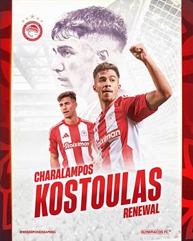 "Ο Χαράλαμπος Κωστούλας ανανέωσε με τον Ολυμπιακό μας!" αναφέρει στην ανακοίνωση της η διοίκηση. Δεν ανακοίνωσε για πότε λήγει το...