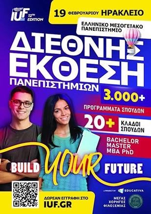 Tο Ελληνικό Μεσογειακό Πανεπιστήμιο (ΕΛΜΕΠΑ), θέλοντας να στηρίξει τον επαγγελματικόπροσανατολισμό και την επαγγελματική ανάπτυξη των νέων, συνδιοργανώνει και φιλοξενείτη Διεθνή...