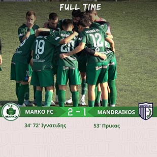 Στο πλαίσιο της 23ης αγωνιστικής η Μαρκό επικράτησε με 2-1 του Μανδραϊκού και μεώισε τη διαφορά από την κορυφή στο...