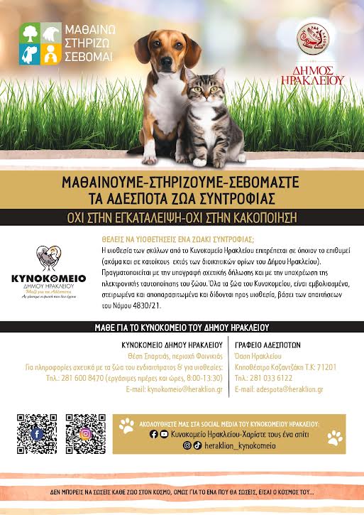 Κάλεσμα προς τη μαθητική κοινότητα για συμμετοχή σε δράσεις για την Παγκόσμια Ημέρα Αδέσποτων Ζώων Ανοικτή εκδήλωση με θέμα «Γνωρίζω...