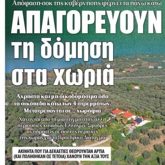 Η κυβερνηση του Κυριακου Μητσοτακη ,ΑΦΑΝΙΖΕΙ τις μικρες ιδιοκτησιες με σειρα αποφασεων ,νομων και διαταγματων απο το 2019 και δωθε!...