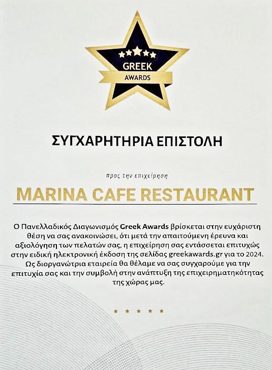Για άλλη μία χρονιά το Café Restaurant «Mαρίνα» της ΔΕΠΑΝΑΛ Α.Ε. κέρδισε τηθετική αξιολόγηση των πελατών και μια ακόμα αναγνώριση...