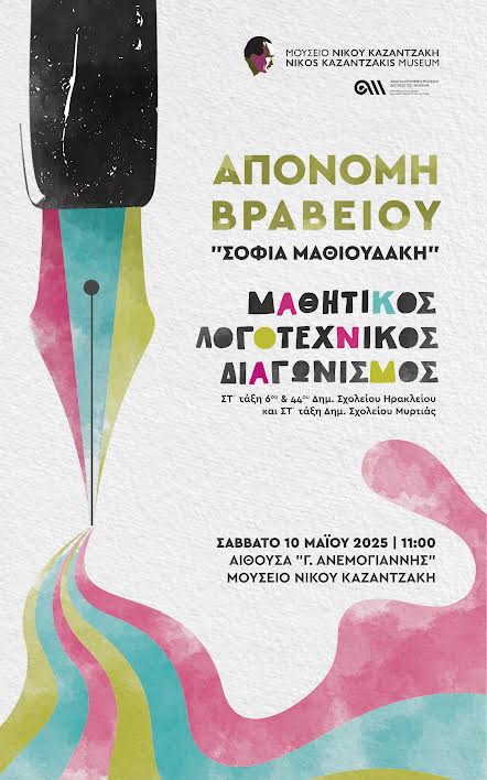 Το Μουσείο Νίκου Καζαντζάκη με τιμή και συγκίνηση απονέμει το Βραβείο«Σοφία Μαθιουδάκη» για τον μαθητικό λογοτεχνικό διαγωνισμό με θέμα«Η ευθύνη...