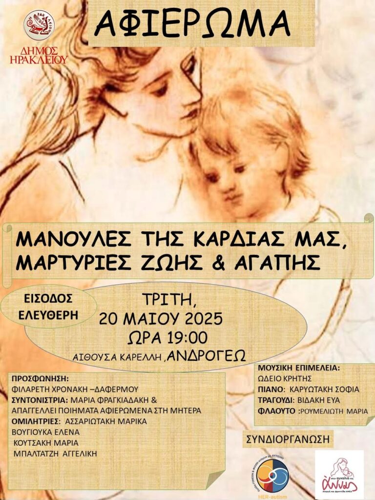 Εκδήλωση αφιέρωμα στη Γιορτή της Μητέρας με τίτλο «Μανούλες της καρδιάς μας– Μαρτυρίες ζωής και αγάπης» διοργανώνει η Αντιδημαρχία Εθελοντισμού...