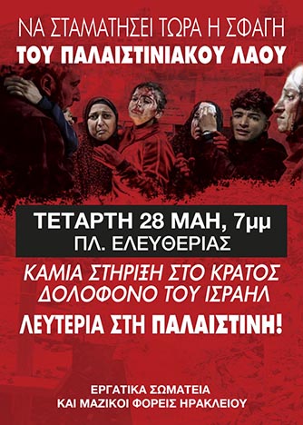Στην Παλαιστίνη και ειδικά στη Λωρίδα της Γάζας, εξελίσσεται μια ανείπωτη τραγωδία, ένα έγκλημα κατά της ανθρωπότητας. Πάνω από 60.000 άνθρωποι...