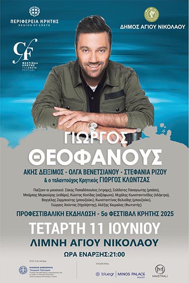 Στις 11 Ιουνίου 2025 και ώρα 21:00, στη λίμνη του Αγίου Νικολάου το 5 ο ΦεστιβάλΚρήτης ανοίγει αυλαία με μια...