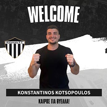 Η ΠΑΕ Καλαμάτα είναι στην ευχάριστη θέση να ανακοινώσει την απόκτηση του ποδοσφαιριστή Κωνσταντίνου Κωτσόπουλου, ο οποίος υπέγραψε μονοετές συμβόλαιο...