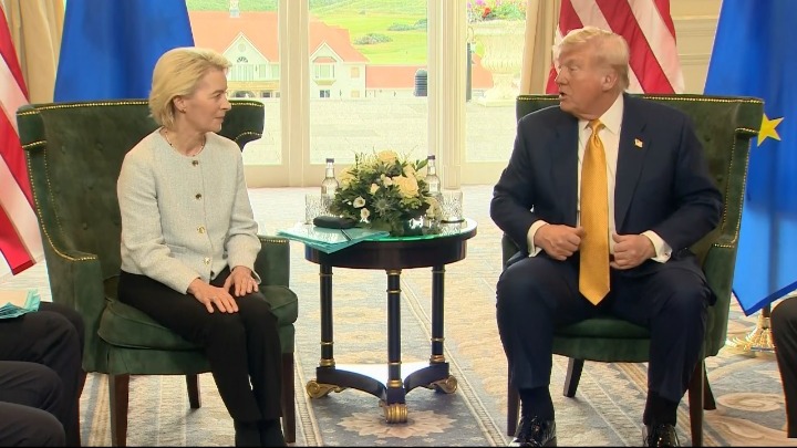 Ο πρόεδρος των ΗΠΑ Ντόναλντ Τραμπ και η πρόεδρος της Ευρωπαϊκής Επιτροπής Ούρσουλα φον ντερ Λάιεν κατέληξαν την Κυριακή σε...