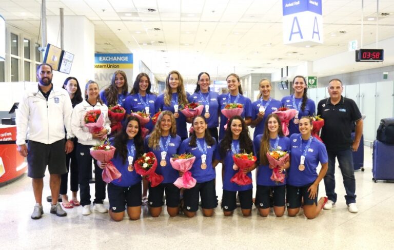 Με το χάλκινο μετάλλιο στις αποσκευές τους και το χαμόγελο στο πρόσωπό τους παρά το πολύωρο και... περιπετειώδες ταξίδι επέστρεψαν...