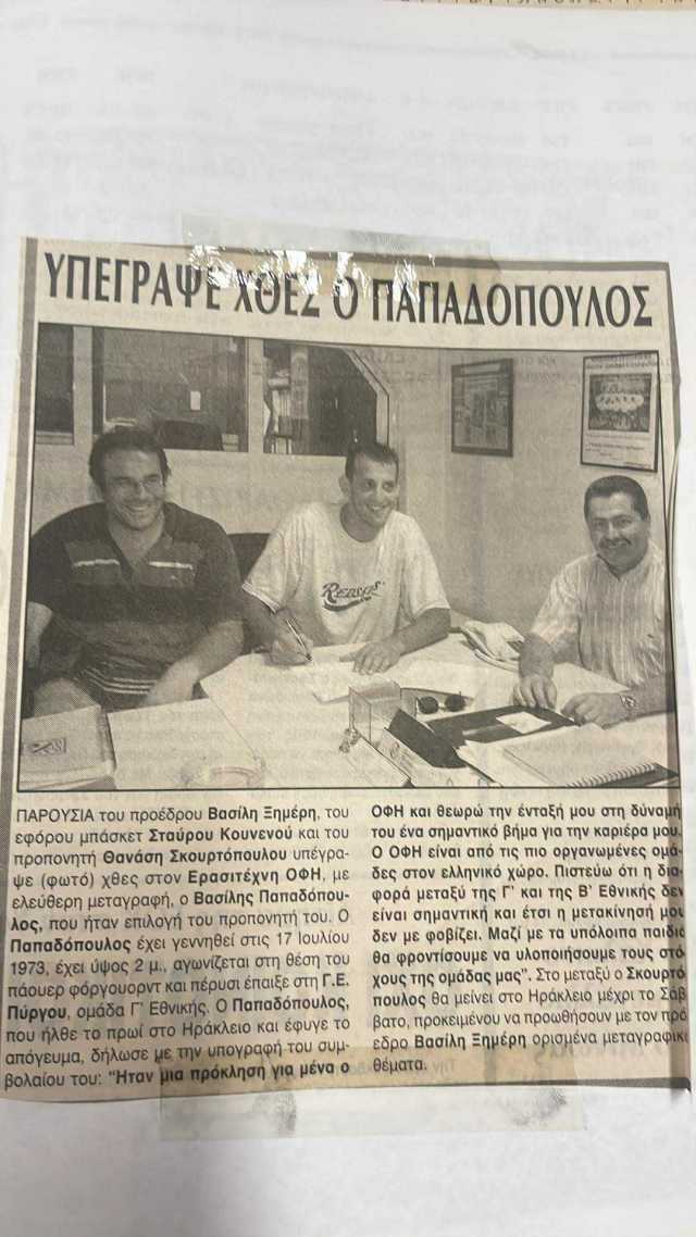 Φωτογραφίες και δημοσιεύματα απο το αρχείο της εφημερίδας "Πατρίς" του Ηρακλείου, απο την περίοδο 1999-2000, με τον Θανάση Σκουρτόπουλο, προπονητή στην...