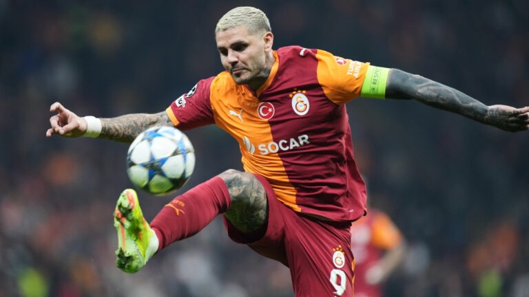 Galatasaray's Mauro Icardi controls the ball during the Champions League opening phase soccer match between Galatasaray and Union Saint-Gilloise, in...