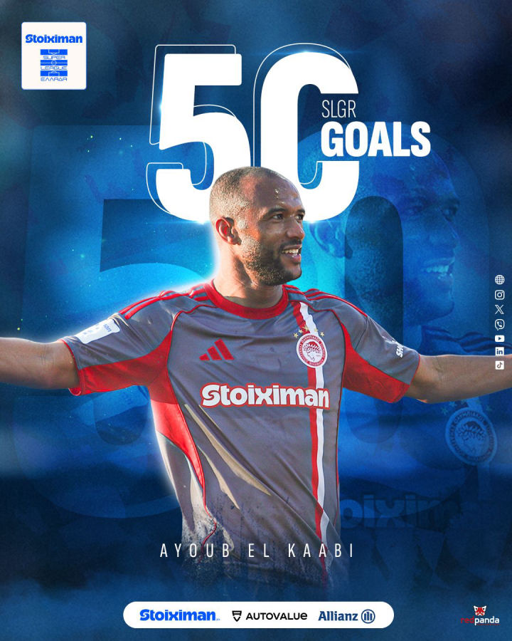 Ο Αγιούμπ Ελ Κααμπί σημείωσε δύο τέρματα στην αναμέτρηση του Ολυμπιακού με τον Πανσερραϊκό στις Σέρρες και έφτασε τα 50...