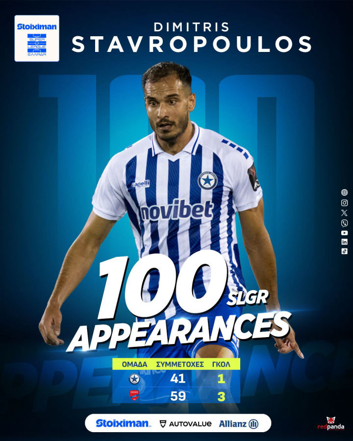 Ο Δημήτρης Σταυρόπουλος έφτασε τις 100 συμμετοχές στη Super League το Σάββατο (7/3) στην αναμέτρηση Άρης – Ατρόμητος 0-0. Ο...