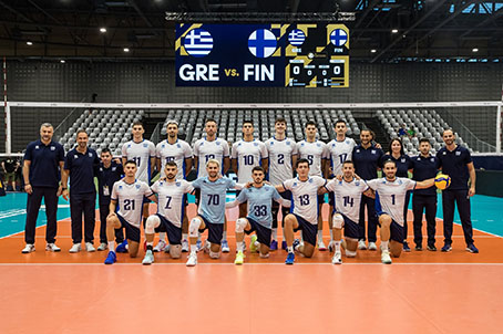 Οι Φινλανδοί μπήκαν καλύτερα στο πρώτο σετ προηγήθηκαν 2-5 με επίθεση και άσο του Γιοκέλα με την Εθνική μας, όμως, να «απαντά» με Μούχλια, Κασαμπαλή και άσο του Ράπτη (5-5) και με δεύτερο άσο του διεθνή ακραίου να περνάει μπροστά 6-5. Το αντιπροσωπευτικό μας συγκρότημα πήρε εύθραστο προβάδισμα 9-7. Κάπου εκεί η ελληνική ομάδα φάνηκε να χάνει τη συγκέντρωσή της σε αντίθεση με τους Φινλανδούς που ανέβηκαν πολύ στο φιλέ και με συνεχόμενα μπλοκ πήραν εκ νέου το προβάδισμα και μια διαφορά (+5) 9-14. Ο Ομοσπονδιακός μας τεχνικός κάλεσε τάιμ άουτ ζητώντας σταθερή υποδοχή ενώ ανακάτεψε την τράπουλα (Γαλιώτος, Ανδρεόπουλος και Νανόπουλος άλλαξαν Κασαμπαλή, Πρωτοψάλτη και Μούχλια) προκειμένου να αλλάξει τα δεδομένα. Ο Νανόπουλος «ξεκόλλησε» τη γαλανόλευκη για το 10-17 αλλά το σκορ είχε ανοίξει υπέρ των Φινλανδών (15-23). Η ελληνική ομάδα ροκάνισε τη διαφορά με τους Νανόπουλο, Βουλκίδη, Ανδρεόπουλο αλλά η Φινλανδία έφτασε με 19-25 στο 0-1.