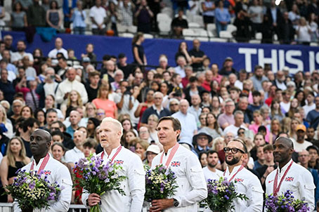Η διαδικασία ολοκληρώθηκε το Σάββατο 19 Ιουλίου 2025, κατά τη διάρκεια της Diamond League στο Ολυμπιακό Στάδιο του Λονδίνου. Οι Βρετανοί αθλητές, που είχαν αγωνιστεί είτε στον τελικό είτε στις προκριματικές σειρές, έλαβαν τα χρυσά τους μετάλλια σε μια συγκινητική τελετή. Οι Ρότζερ Μπλακ, Ίουαν Τόμας, Τζέιμι Μπόλτς, Μαρκ Ρίτσαρντσον και Μαρκ Χίλτον ανέβηκαν στο βάθρο, ενώ το πλήθος τους αποθέωσε και ο εθνικός ύμνος της Μεγάλης Βρετανίας αντήχησε στο στάδιο, προσφέροντάς τους τη στιγμή δόξας που στερήθηκαν πριν από 28 χρόνια.