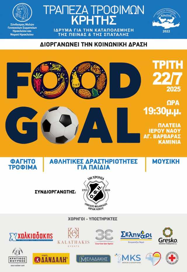 Ο Ερασιτέχνης ΟΦΗ, η Τράπεζα Τροφίμων Κρήτης, αλλά και σημαντικοί χορηγοί που συμμετέχουν σε αυτόν τον σκοπό, βάζουν…γκολ στο φαγητό!