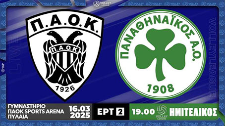 16/03/2025:Volley LeagueΗμιτελικός – 2Π.Α.Ο.Κ. F&U – Παναθηναϊκός Α.Ο.