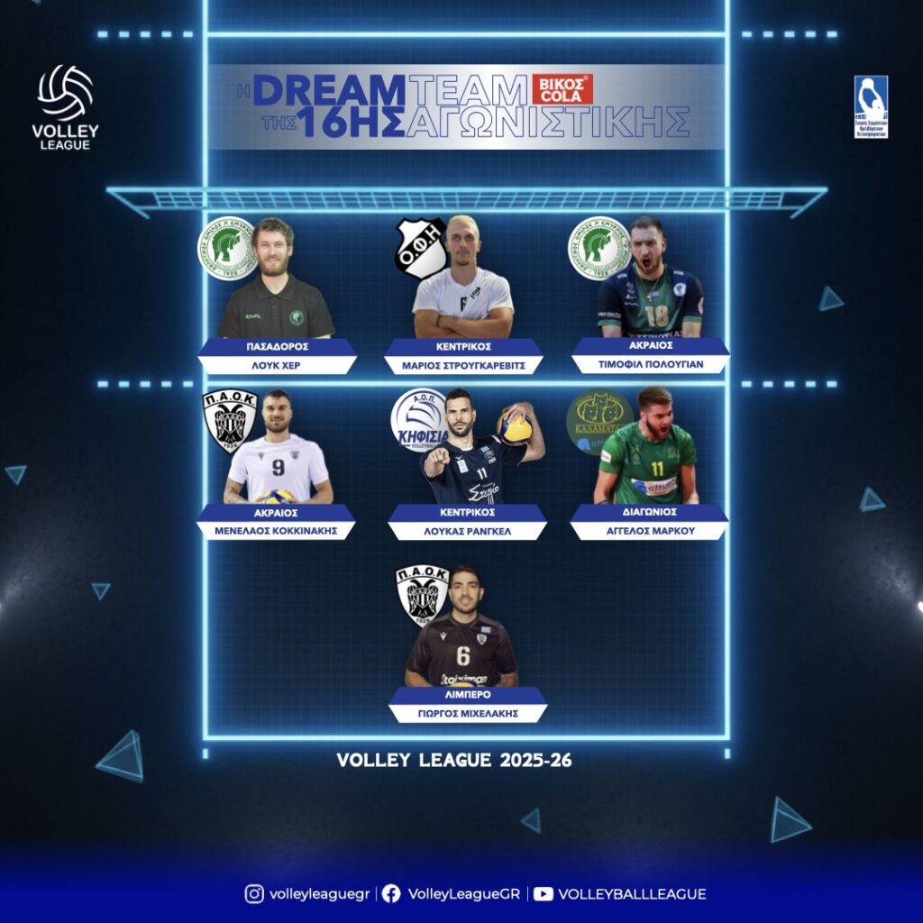Ο Ουκρανός ακραίος του Α.Ο.Ν.Σ.Μίλων Τίμοφιλ Πολουγιάν αναδείχθηκε MVP Βίκος Cola της 16ης αγωνιστικής του πρωταθλήματος Volley League 2025-26.