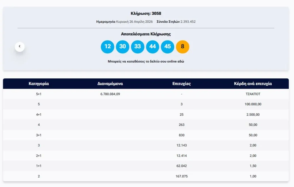 Άλλες Ειδήσεις Τζακ – ποτ στη πρώτη κατηγορία 2 ώρες ago About Author admin See author's posts Μοιραστείτε το: Continue Reading Previous H EOE επιβραβεύει όσους πήραν μετάλλιο στα Ευρωπαϊκά και Παγκόσμια Πρωταθλήματα