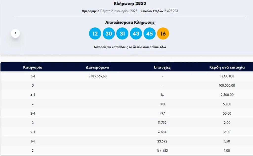 Άλλες Ειδήσεις Τζακ – ποτ στις δύο πρώτες κατηγορίες 1 έτος ago About Author admin See author's posts Μοιραστείτε το: Continue Reading Previous Ακυρώθηκαν οι Μεσογειακοί Αγώνες κλειστού στίβου Κ23Next Το ταξίδι της αρχηγού Μαργαρίτας Πλευρίτου μέχρι το «αντίο» της στην Εθνική ομάδα