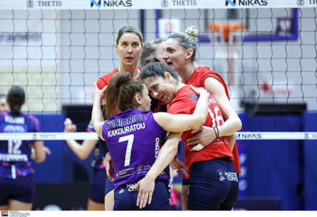 Βλαχάκη 22 (18/39 επ., 1 άσσος, 3 μπλοκ, 61% υπ. – 36% άριστες), Μερτέκη 8 (6/26 επ., 2 άσσοι, 50% υπ. – 37% άριστες), Φλέμινγκ 6 (5/8 επ., 1 μπλοκ), Σπικς 5 (2/5 επ., 1 άσσος, 2 μπλοκ), Μάασε 14 (10/25 επ., 3 άσσοι, 1 μπλοκ), Κιουτσιούκη 11 (7/13 επ., 2 άσσοι, 2 μπλοκ) / Μανιατογιάννη (λ, 35% υπ. – 30% άριστες), Γκιαούρη, Γαροφαλάκη, Φωκιανού, Λινκ.