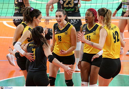 Σάντος 18 (17/53 επ., 1 άσσος), Γκόγκιτς 3 (2/5 επ., 1 άσσος), Πάπα 24 (21/54 επ., 1 άσσος, 2 μπλοκ, 36% υπ. – 8% άριστες), Γενιτσαρίδη 12 (12/30 επ., 45% υπ. – 40% άριστες), Αργυρίου 6 (3/8 επ., 2 άσσοι, 1 μπλοκ), Μπράουν 10 (6/18 επ., 2 άσσοι, 2 μπλοκ) / Γούλα (λ, 56% υπ. – 35% άριστες), Χάνα (λ), Σακκά, Πήττα, Αγγελοπούλου, Γούνου.