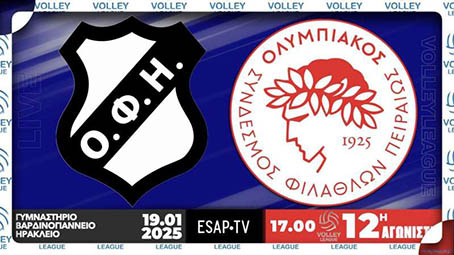 | 19/01/2025: | Volley League | Ο.Φ.Η. – Ολυμπιακός Σ.Φ.Π. | ||