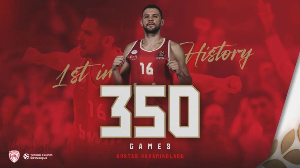 Έφτασε τις 350 συμμετοχές στην Ευρωλίγκα με την «ερυθρόλευκη» φανέλα, τις περισσότερες που είχε ποτέ παίκτης στην Ευρωπαϊκή ιστορία του Θρύλου μας!