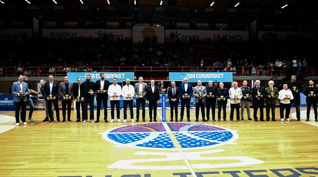 Σε συνεργασία του Υπουργείου Αθλητισμού με την Ελληνική Ομοσπονδία Καλαθοσφαίρισης, τα μέλη της ομάδας που θριάμβευσαν στο Βελιγράδι βραβεύτηκαν για το ιστορικό τους επίτευγμα στο ημίχρονο της αναμέτρησης της Εθνικής Ανδρών με την Ολλανδία για την τελευταία αγωνιστική των προκριματικών του Ευρωμπάσκετ.