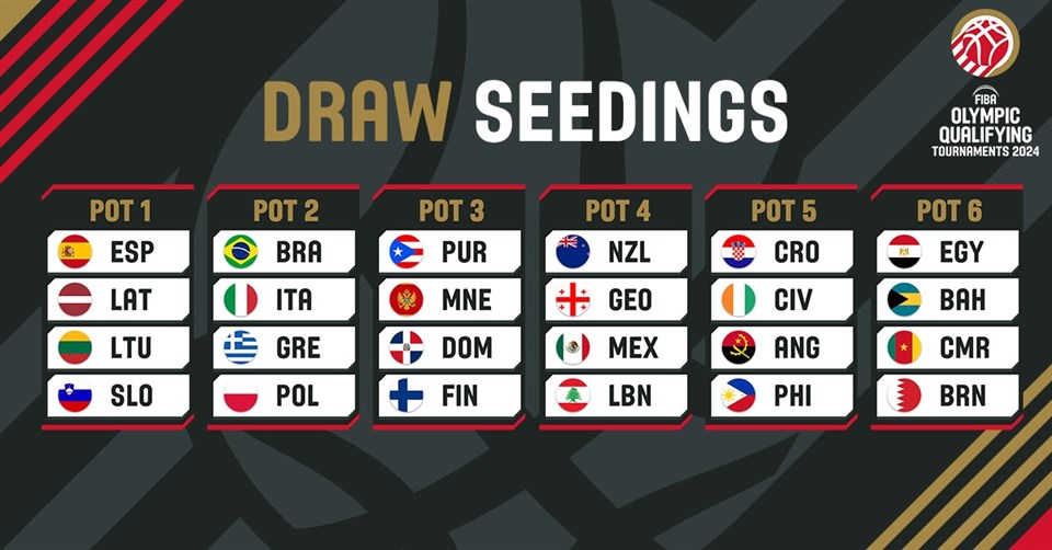Απόψε (20.00 ώρα Ελλάδας), θα διεξαχθεί και η κλήρωση για τις 24 ομάδες που θα διεκδικήσουν τα τέσσερα τελευταία “εισιτήρια” για τους Ολυμπιακούς αγώνες (ο νικητής του κάθε Προολυμπιακού) και οι οποίες είναι οι, Ανγκόλα, Βραζιλία, Ακτή Ελεφαντοστού, Δομινικανή Δημοκρατία, Αίγυπτος, Φινλανδία, Γεωργία, Ελλάδα, Ιταλία, Λετονία, Λίβανος, Λιθουανία, Μεξικό, Μαυροβούνιο, Νέα Ζηλανδία, Φιλιππίνες, Πουέρτο Ρίκο, Σλοβενία, Ισπανία, Μπαχάμες, Μπαχρέιν, Καμερούν, Κροατία, Πολωνία.