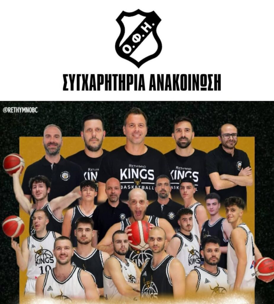 Η Επιτροπή Μπάσκετ του ΟΦΗ συγχαίρει την ομάδα του Ρεθύμνου BC για την κατάκτηση του πρωταθλήματος ανδρών Κρήτης!