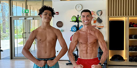 Ο Κριστιάνο Ρονάλντο Τζούνιορ, ακολουθεί πιστά τα χνάρια του πατέρα του, ποζάροντας δίπλα του στο γυμναστήριο. «Όπως ο πατέρας, έτσι και ο γιος», έγραψε στη φωτογραφία που δημοσίευσε στα social media ο CR7, δείχνοντας το γυμνασμένο σώμα του ίδιου, αλλά και του γιου του.