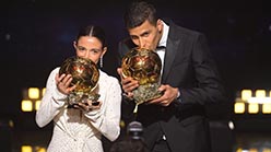 Ισπανικό χρώμα είχε η τελετή της 68ης απονομής της «Χρυσής Μπάλας», που διεξήχθη στο Παρίσι στο «Τεάτρ ντε Σατλέ», με τον μέσο της Μάντσεστερ Σίτι και της Εθνικής Ισπανίας, Ροδρίγο Ερνάντεθ Καρσκάντε (Ρόδρι) και την επιθετικό της Μπαρτσελόνα και της Εθνικής Ισπανίας, Αϊτάνα Μπονμάτι, να κατακτούν τα βαρύτιμα τρόπαια της βραδιάς, των κορυφαίων στον χώρο του ποδοσφαίρου για το 2024.