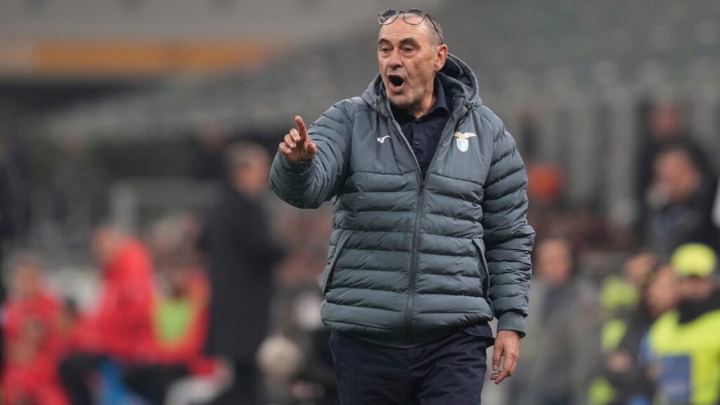 Lazio’s head coach Maurizio Sarri gestures during the Serie A soccer match between AC Milan and Lazio, in Milan, Italy, Saturday, Nov. 29, 2025. (AP Photo/Antonio Calanni)