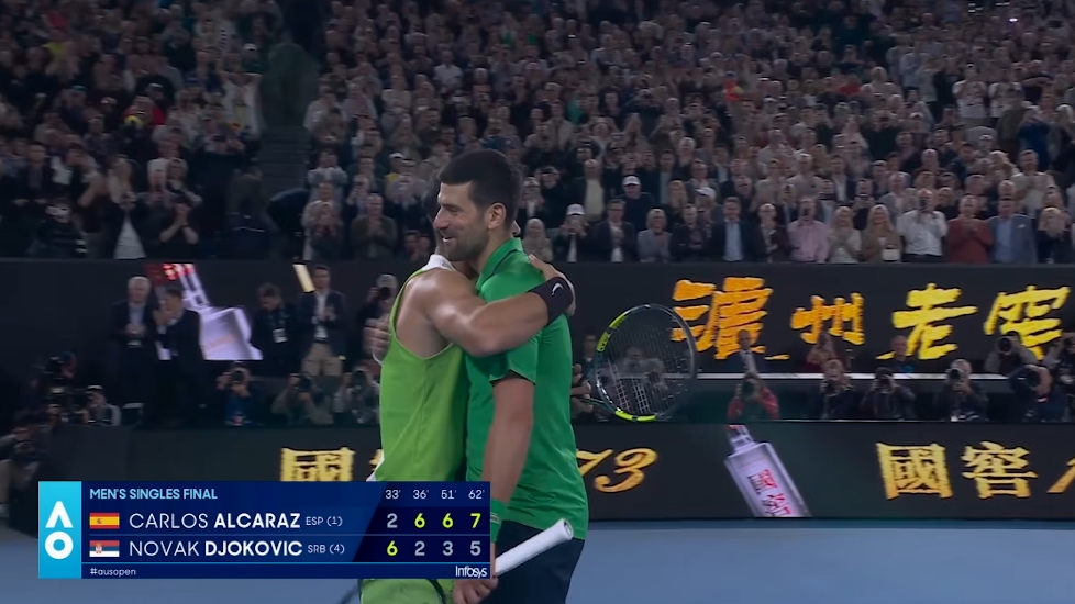 Διεθνείς Ειδήσεις Alcaraz – Djokovic: Τα highlights του τελικού (video) 3 μήνες ago Τα highlights από τον ιστορικό τελικό του Australian Open, μεταξύ του Carlos Alcaraz και του Novak Djokovic. (https://tennisnews.gr) About Author admin See author's posts Μοιραστείτε το: Continue Reading Previous Alcaraz σε Djokovic: “Σε ευχαριστώ για ό,τι κάνεις, μου δίνεις έμπνευση” (Video)Next Τσέλσι – Γουέστ Χαμ (Video)