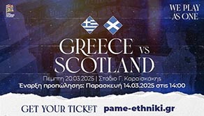 Τα εισιτήρια θα διατίθενται ηλεκτρονικά από την πλατφόρμα pame-ethniki.gr και την ιστοσελίδα της Τicketmaster μέχρι να εξαντληθούν.