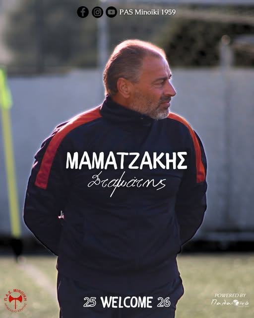 Είμαστε στην πολύ ευχάριστη θέση να ανακοινώσουμε την έναρξη της συνεργασίας μας με τον προπονητή, Σταμάτη Μαματζάκη, που θα βρίσκεται στο τιμόνη του ΠΑΣ Μινωικής για τη σεζόν 2025-2026!