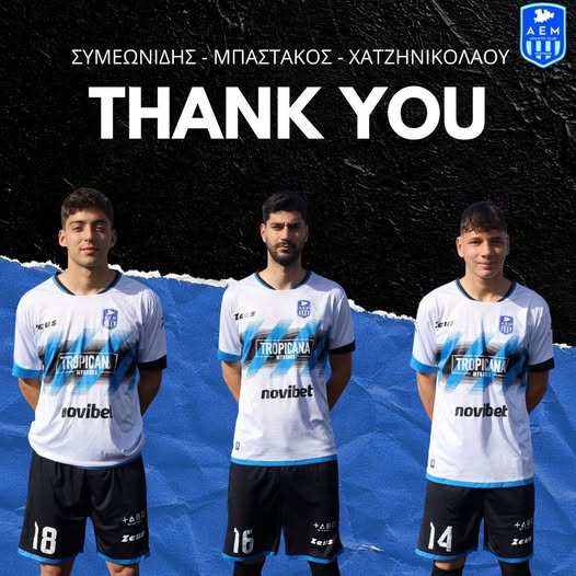 Η Αθλητική Ένωση Μυκόνου ανακοινώνει τη λύση συνεργασίας με τους ποδοσφαιριστές, Στέφανο Συμεωνίδη, Δημήτρη Χατζηνικολάου και Μιχάλη Μπαστακό.