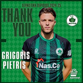 Ο Γ.Σ. Μαρκό ανακοινώνει τη λύση της συνεργασίας του με τον ποδοσφαιριστή Γρηγόρη Πιετρη, ο οποίος φόρεσε τη φανέλα της ομάδας μας τα τελευταία δύο χρόνια.