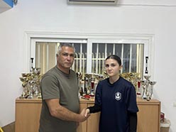 *Ο πρόεδρος της γυναικείας ομάδας ποδοσφαίρου του Ηροδότου Γιάννης Φουντουλάκης δίνει τα χέρια με τη νέα παίκτρια της ομάδας μας Μαριτίνα Συντυχάκη.