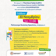 Εκδήλωση Παγκρήτιου Συλλόγου Νεανικού Διαβήτη (ΠΑΣΥΝΕΔ) για την Παγκόσμια ημέρα Διαβήτη 2024 || Σάββατο 30 Νοεμβρίου στις 11:00 || ΠΟΛΥΚΕΝΤΡΟ Δήμου Ηρακλείου