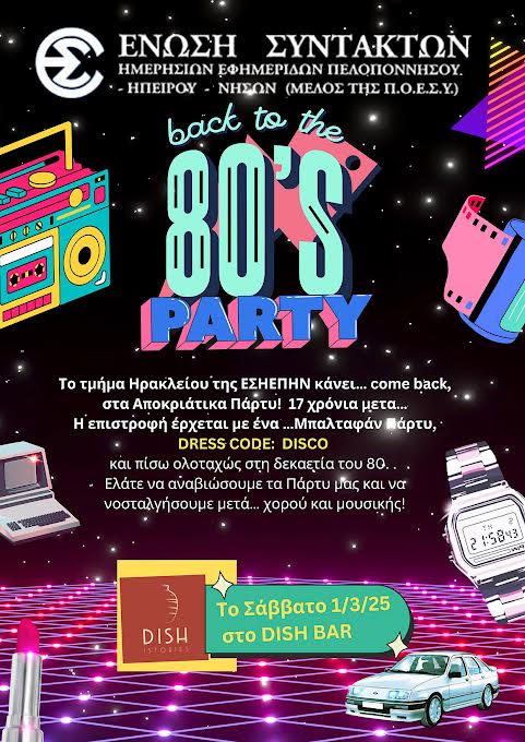 δεκαετία του’80. Πότε; Το Σάββατο 1 Μαρτίου στο Dish (Παπαγιάμαλη 3, Άγιος Τίτος). Ελάτε