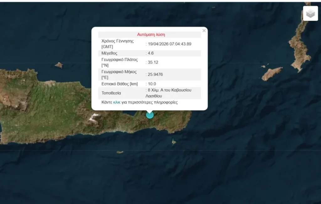 ΣΕΙΣΜΙΚΗ δόνηση έντασης 4.6 βαθμούς της κλίμακας ρίχτερ είχαμε σήμερά το πρωί στην περιοχή του Λασιθίου.