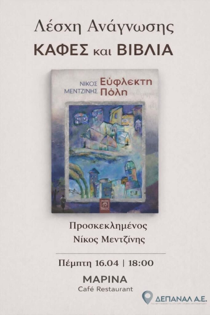 Ο Νίκος Μετζίνης στην Λέσχη Ανάγνωσης «Καφές και Βιβλία», στο ΜΑΡΙΝΑ Café Restaurant, την Πέμπτη 16 Απριλίου, 18:00