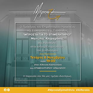 Κοινωνία - Πολιτική Σήμερα η παρουσίαση του συνδυασμού με ηγέτη τον Μαν. Αλιφιεράκη 1 έτος ago About Author admin See author's posts Μοιραστείτε το: Continue Reading Previous Ηράκλειο: Συναγερμός στους άνδρες της ΕΛ.ΑΣ. γιατί χάθηκε από την περιοχή του Μασταμπά κοριτσάκιNext Νεκροί στη θάλασσα