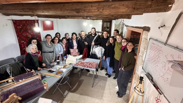 Ιδιαίτερο ενδιαφέρον παρουσίασαν η εξάσκηση σε επαγγελματικό αργαλειό με πεταχτή σαΐτα, η εργασία σε επιτραπέζιους αργαλειούς, καθώς και η δημιουργία χαλιού με κόμπους. Παράλληλα, πραγματοποιήθηκε πεντάωρο μάθημα κεντητικής στην κρητική βελονιά από την κ. Ζαφειρούλα Παπαμαρκάκη, προσθέτοντας ακόμη ένα σπουδαίο κεφάλαιο σε αυτή τη μοναδική εμπειρία.