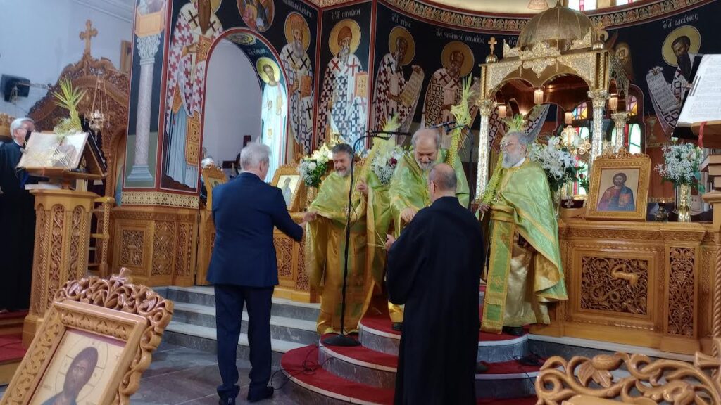 Μετά το τέλος της Θείας Λειτουργίας ο Αλέξης Καλοκαιρινός έλαβε τα καθιερωμένα