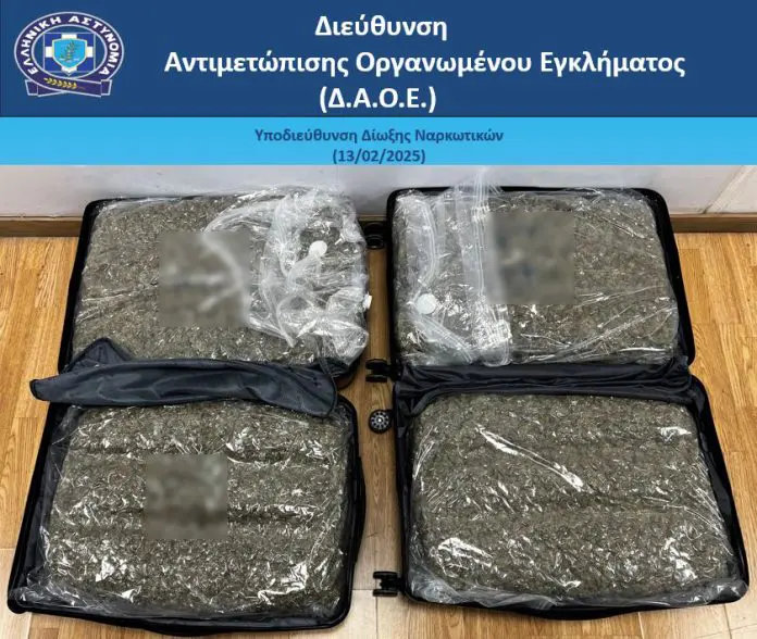 Από την Υποδιεύθυνση Δίωξης Ναρκωτικών, της Διεύθυνσης Αντιμετώπισης Οργανωμένου Εγκλήματος, συνελήφθη απογευματινές ώρες χθες, Πέμπτη 13 Φεβρουαρίου 2025, στο αεροδρόμιο «Ελευθέριος Βενιζέλος» της Αθήνας, γυναίκα, η οποία κατείχε μεγάλη ποσότητα ακατέργαστης κάνναβης.