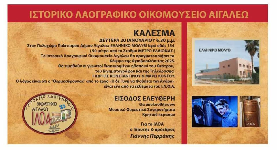 Κοινωνία - Πολιτική “Iστορικό Λαογραφικό Οικομουσείο Αιγάλεω 1 έτος ago About Author admin See author's posts Μοιραστείτε το: Continue Reading Previous Κρίσεις Αστυνομικών Διευθυντών Ελληνικής ΑστυνομίαςNext Ισπανία: Ατύχημα με τραυματίες, οι δύο σοβαρά, σε χιονοδρομικό κέντρο-Κατέρρευσε αναβατήρας