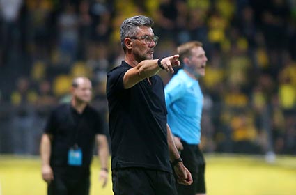 «Μετά από ένα τέτοιο αποτέλεσμα και αποκλεισμό, δεν μπορείς να πεις πολλά. Είναι κρίμα για τα παιδιά και τον κόσμο της ομάδας. Δυστυχώς, ‘πληρώσαμε’ συγκυρίες και βρεθήκαμε πίσω στο σκορ. Στο ημίχρονο είπαμε ότι μπορούμε να ‘γυρίσουμε’ το ματς, δεν καταφέραμε να πετύχουμε γρηγορότερα το δεύτερο γκολ για να έχουμε χρόνο να σκοράρουμε και άλλο. Εξακολουθώ να πιστεύω ότι φέραμε καλούς παίκτες στην ομάδα. Όλοι είναι στεναχωρημένοι για τον αποκλεισμό. Έχουμε καλούς παίκτες και καλούς χαρακτήρες στην ομάδα. Θα πάρω την ευθύνη για τον αποκλεισμό, θα αφήσω τα παιδιά έξω. Πιστεύω στα παιδιά, θα γίνουμε καλή ομάδα. Δε θα τους ‘κάψουμε’ μετά από έναν αποκλεισμό, αυτά τα παιδιά δουλεύουν μόλις δύο εβδομάδες. Περίμενα ότι θα βγάλουμε προσωπικότητα στο γήπεδο και θα διαχειριστούμε καλύτερα το παιχνίδι, αλλά αυτά συμβαίνουν στο ποδόσφαιρο. Δύσκολο είναι το αποψινό βράδυ για μας, όπως και η επόμενη εβδομάδα, αλλά πρέπει να σηκώσουμε κεφάλι. Επαναλαμβάνω, τα παιδιά είναι καλοί παίκτες, θέλουν στήριξη και βοήθεια. Πρέπει να σταθούμε δίπλα τους. Πείτε ότι ο προπονητής είναι κακός, οι παίκτες μας, όμως, είναι καλοί, θέλουν χρόνο. Ο διαιτητής έπαιξε καθοριστικό ρόλο στην εξέλιξη του ματς».